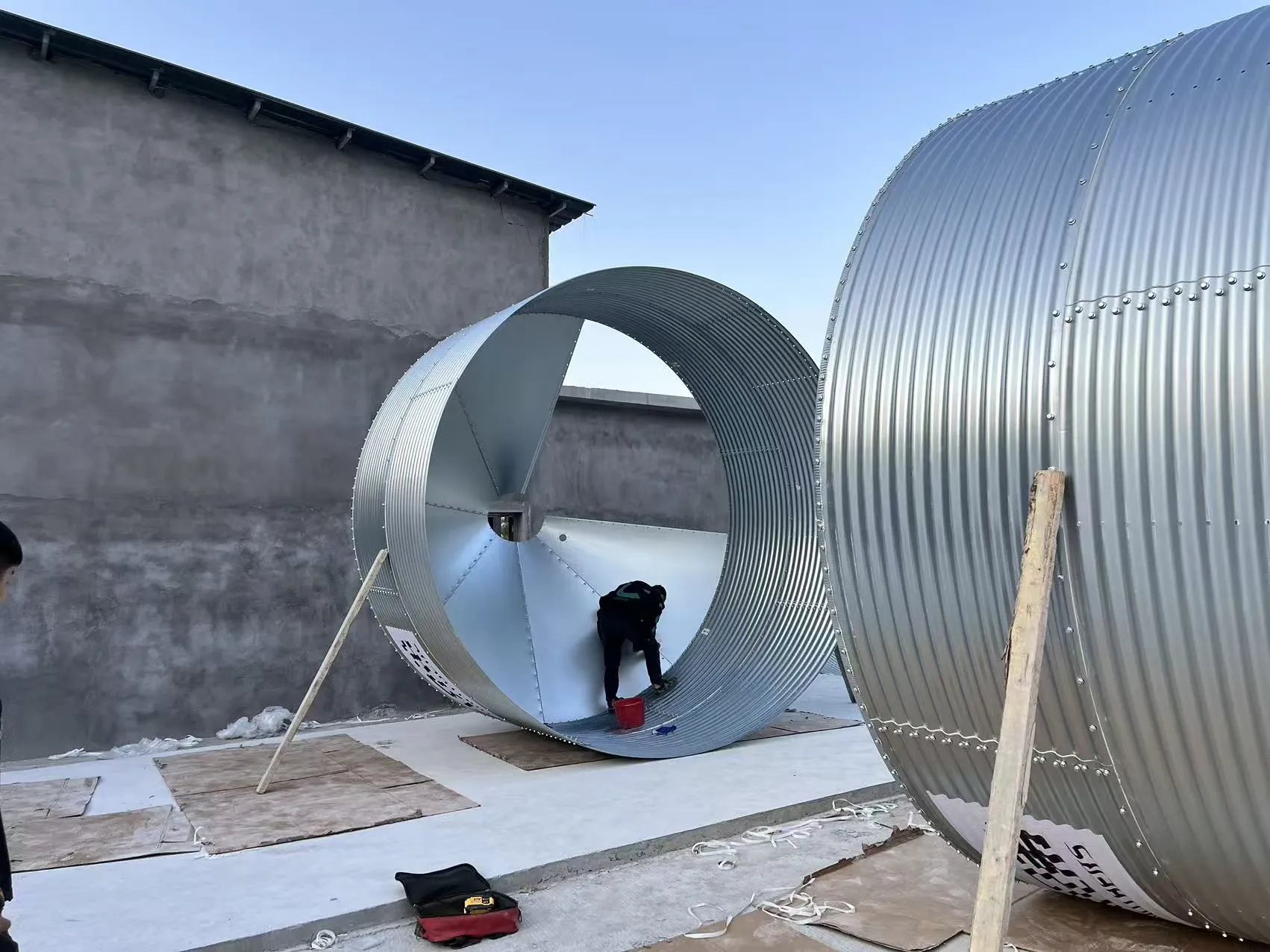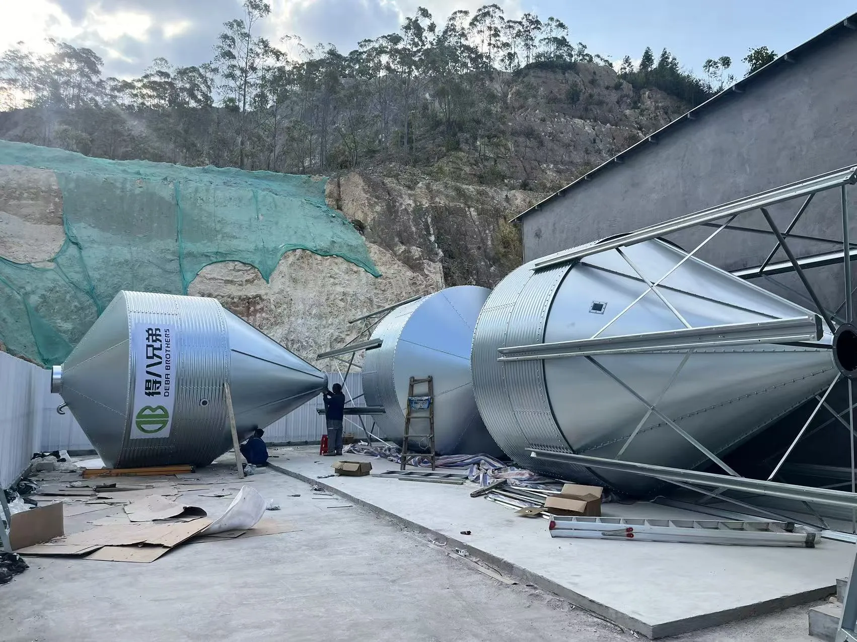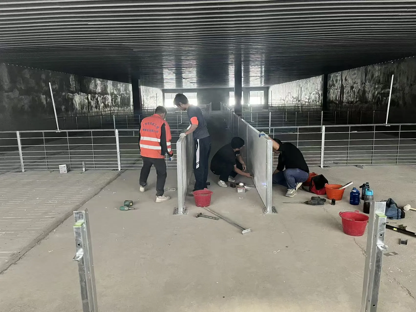 O período de construção está previsto para durar três meses. Atualmente, os trabalhadores estão instalando silos de ração e terminando os currais, e a construção está em pleno andamento.