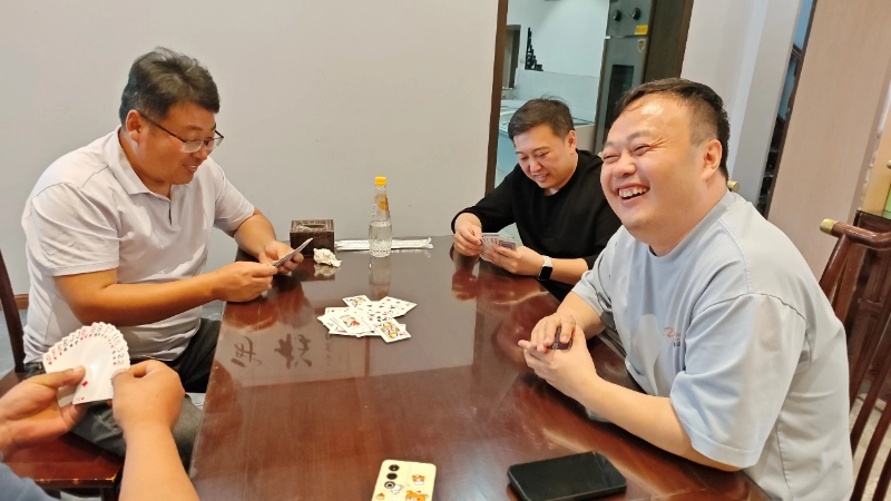Após um breve descanso ao meio-dia, às 12h30, nos mudamos para o hotel e iniciamos uma interessante competição Guandan. Como um projeto de team building amado por todos, Guandan não apenas testa o pensamento lógico pessoal, mas também presta mais atenção à cooperação tácita entre parceiros - "Uma boa carta não compete no momento, e a compreensão tácita do parceiro é mais importante do que o heroísmo pessoal", que é exatamente o significado da construção de equipe Guandan.