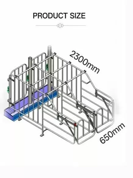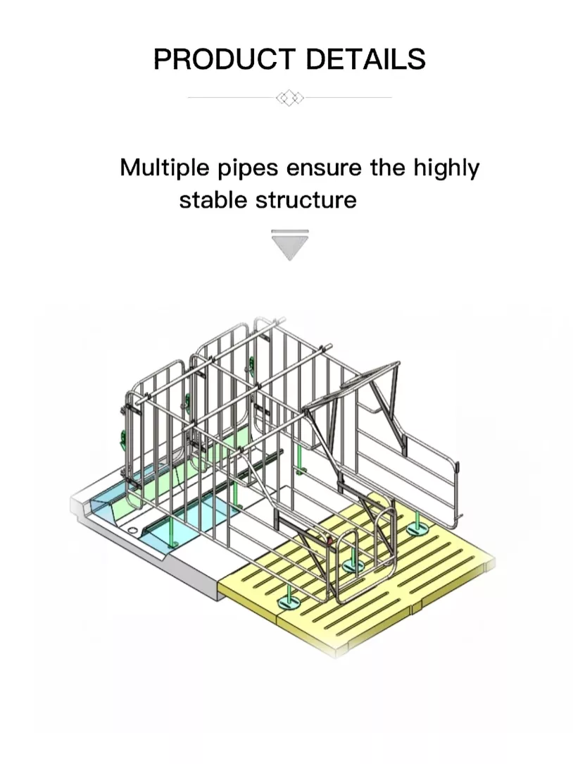 1. Porta de travamento frontal segura com trava confiável evita a fuga da porca, com bordas de metal arredondadas para evitar ferimentos aos animais.